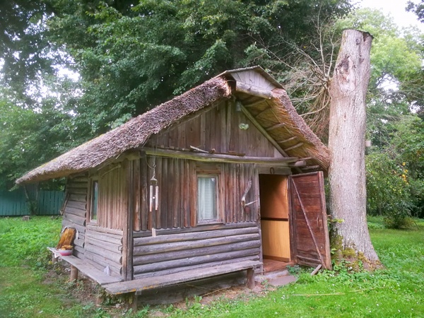 In old times the roofs usually were made from straw. The windows sometimes had window shades, usually painted with white paint.