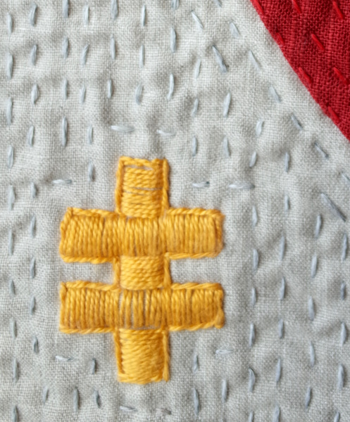 13. I like how you simplified the knight. So nice how you did the two symbols in the corners. And of course the hand quilting is a great addition.