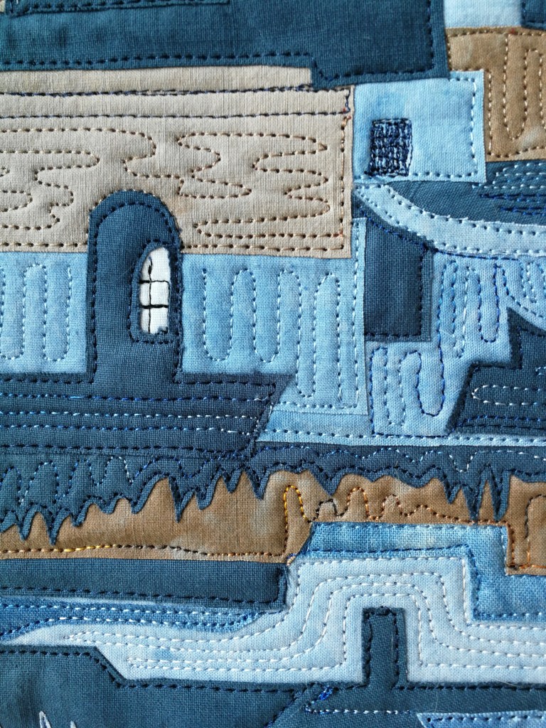 12. You really succeeded in getting the atmosphere of the painting. It is a wonderful piece and the light is such a beautiful accent. I keep looking at all the different pieces and the stitching. Bravo.