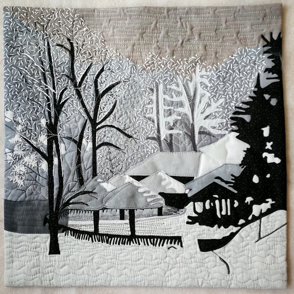 2. Magnificent transposition from the photo. Thanks to the black and white and the hand stitch, you have highlighted your quilt. You were able to create the right winter atmosphere. I like it.