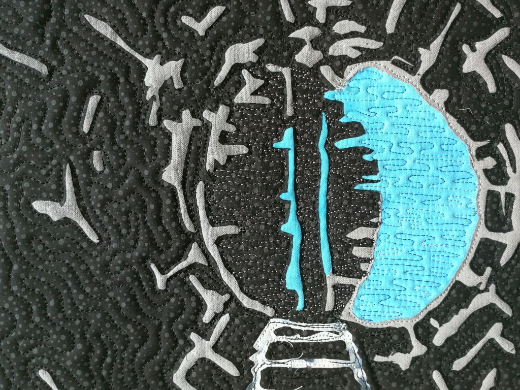 11. Your quilt shows the depth of the well and also reflects the deep meaning in the text you chose. Great use of colour and stitch. Very effective.