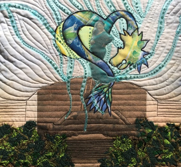 I love you creativity and the way you express it. Beautiful quilt that tells a story through images, composition and colors. Beautiful!