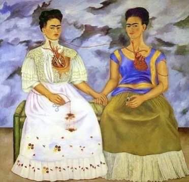 There is so much symbolism and messages in this piece ! it is especially clever to have cut Frida in two to show the duality of her feelings.