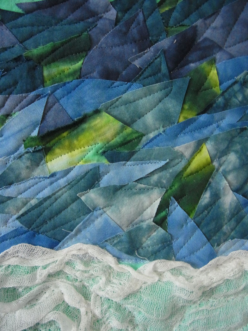 Definitely a unique interpretation of the theme…and a great use of piecing and scrim. I’ve not thought of snow and ice as textured in this way, and I really like that idea!