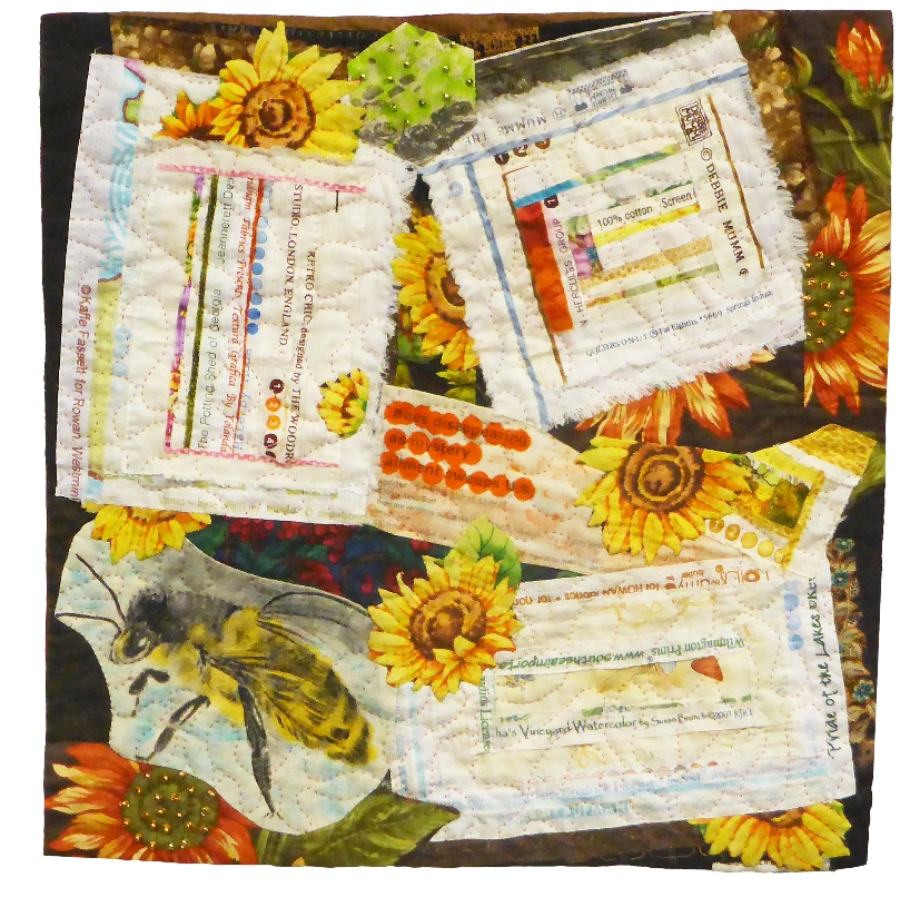 Techniques: hand-stitched, hand appliqué, hand pieced, hand quilted, photo transfer, brush dyeing