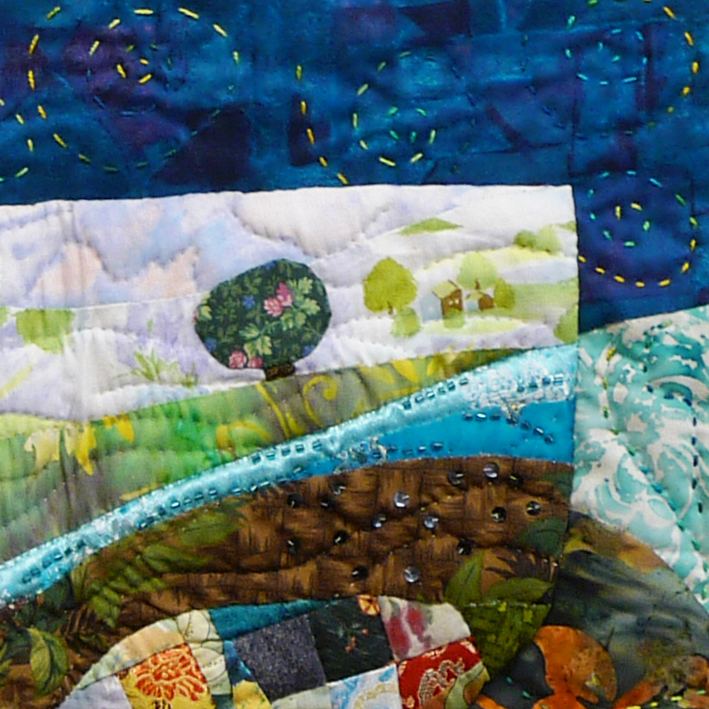 Materials: Silk, commercial cottons, beads, glitter, embroidery floss