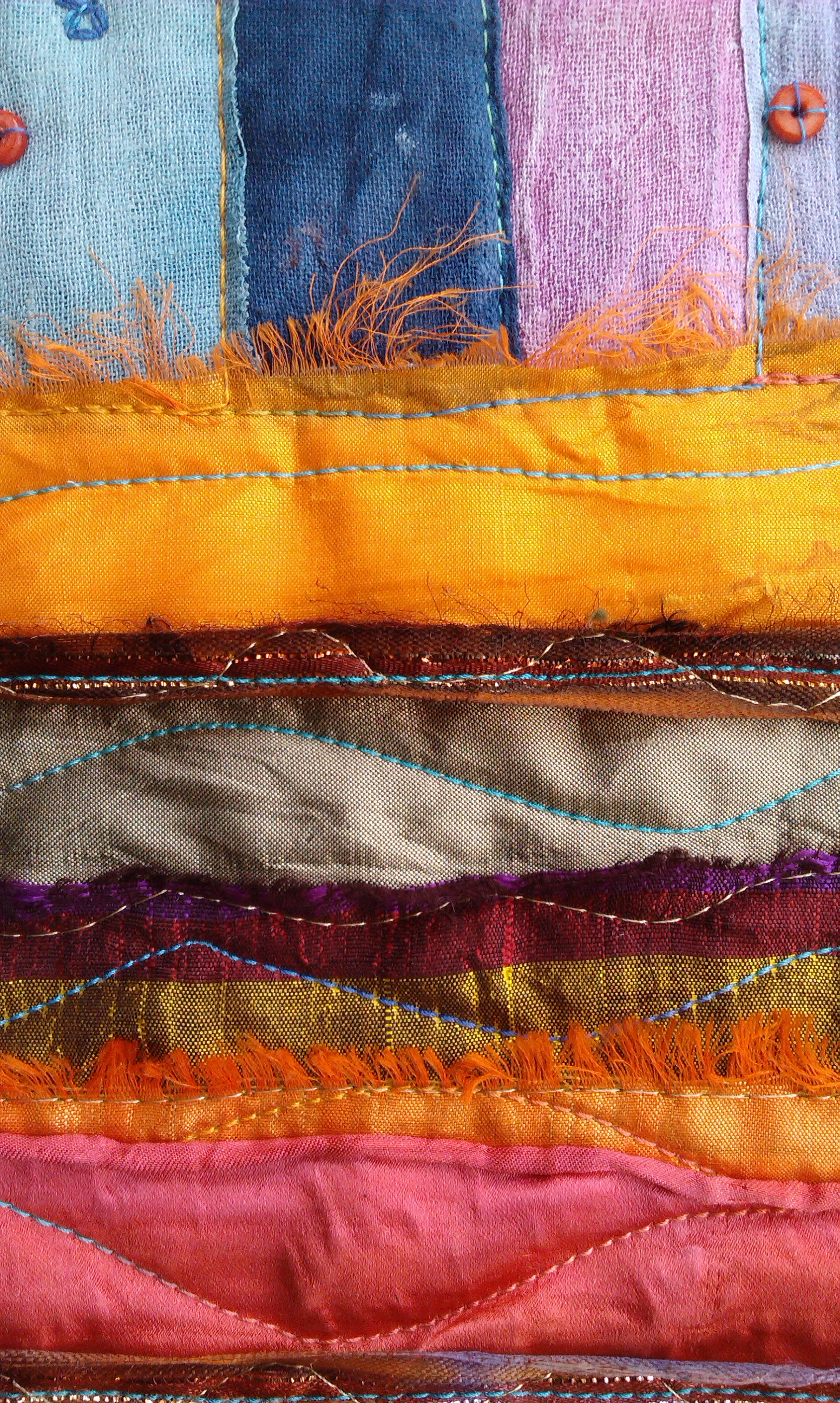 As this memory is of my early years, I have kept the design quite naive and unsophisticated. I can’t decide whether I enjoyed doing the quilt so much because of the memory it evoked, or if it was the use of such bright and joyful coloured fabrics, either way, it felt good and I very much enjoy the process of working through our themes.