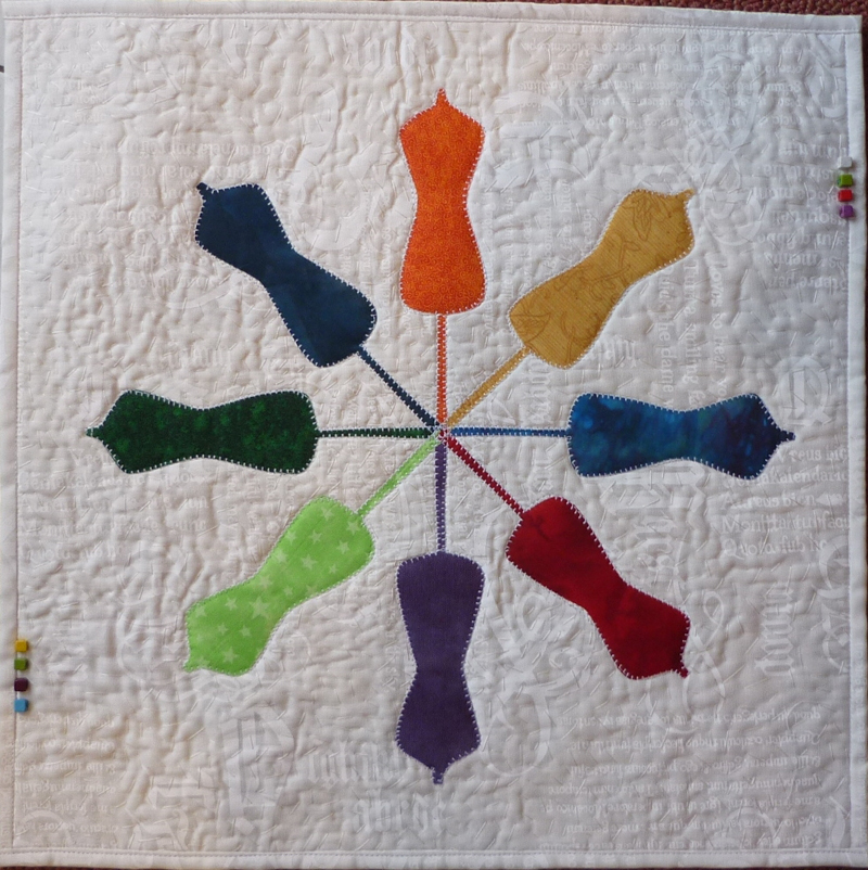 Because I was struggling to ‘come up with something’ I resorted to looking in the dictionary for the definition of rhythm and so, with the help of the little black book and my husband, ‘Out for a Spin’ was born. I took the definition – ‘repeated pattern of sound or movement’ and then enjoyed the experience of designing my piece.