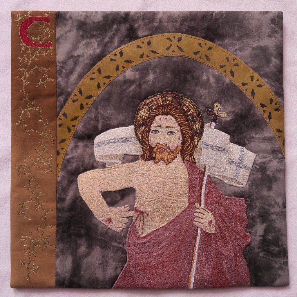 5. Another beautiful fresco piece in your fresco series.I am in awe of your stitching of the Christ figure. Bravo.