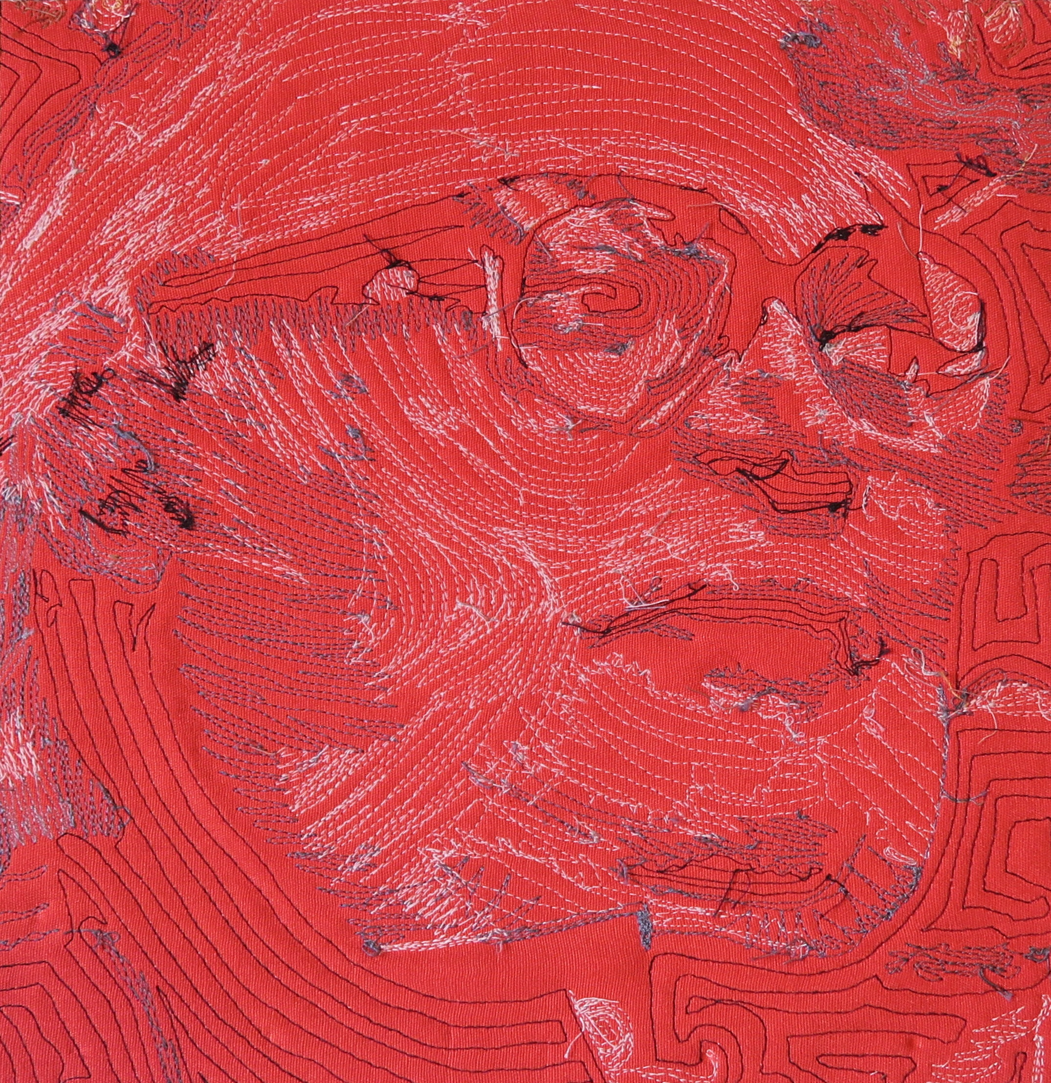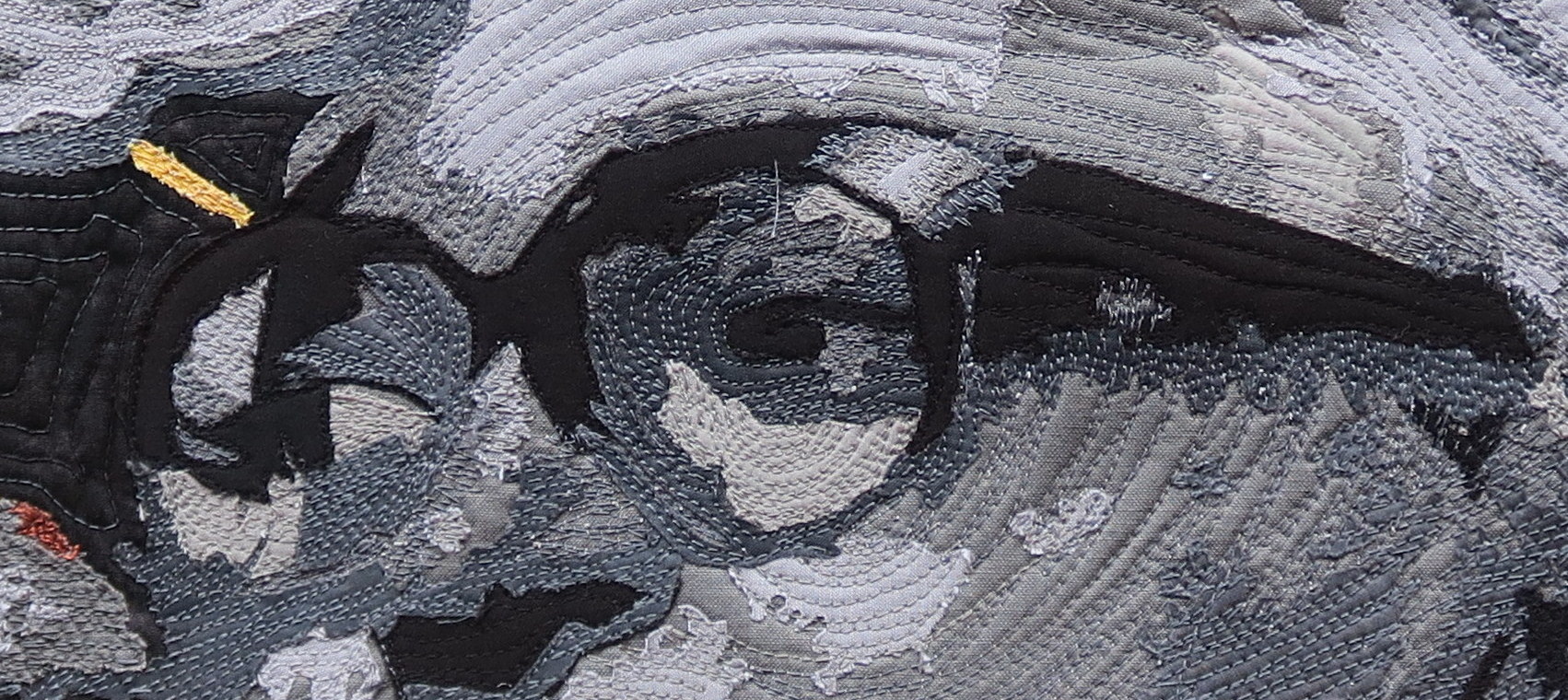 A very powerful portrait. Your quilting adds so much depth and detail. Great work.