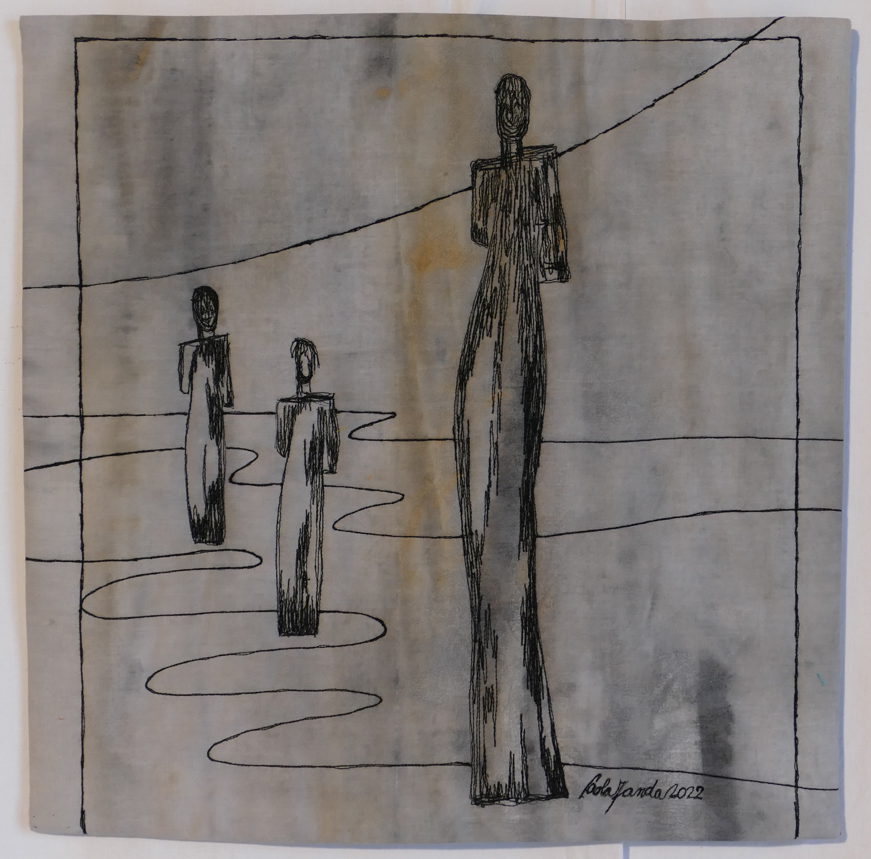 12. Yes I immediately recognised Giacometti’s long figures that made him famous. Love your background fabric and the effective stitching of the figures,. Bravo.