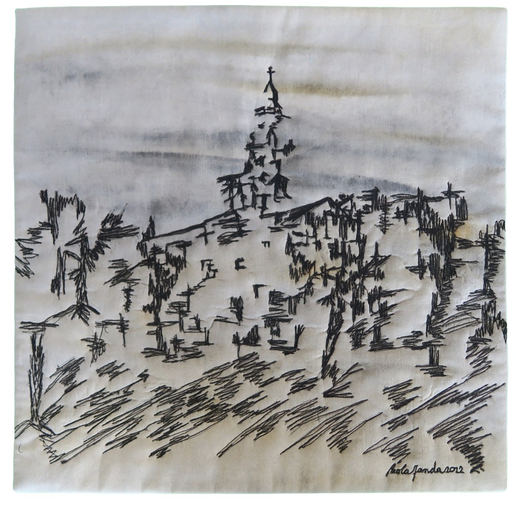 It is amazing how the mimimal stitching in your thread drawing accurately depicts the vista. A fitting finale to your series. Well done