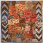 This is the third and last in our series, in which the subject for the series was chosen by each artist. The theme for this challenge is ‘complementary’, where the artists will choose two complementary colours to depict their subject. We decided that one of the colours would be picked up from our previous ‘abstract’ quilts – giving another dimension to our challenge. Perhaps the continuity in the series will interest you, so you can see each artists’ previous pieces at the end of each of their detailed entries – just click on each thumbnail below to see the full stories.