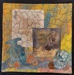 This year our challenge will be to use ‘Decay’ as our theme to create our quilts. At first this may seem a little daunting and dull, but on consideration you will see that there are so many things which could fit into this theme – think about fallen leaves, spoiled fruit, fungi, old buildings, rust, aged photos, and so much more. As you look around and think more deeply you will discover that the range of options is huge. These are the first quilts based on this theme and I’m sure you’ll agree that the pieces are intriguing, and that the rest of the year will be fascinating. As always, you can see more details and the thoughts behind each piece by clicking on the small images below